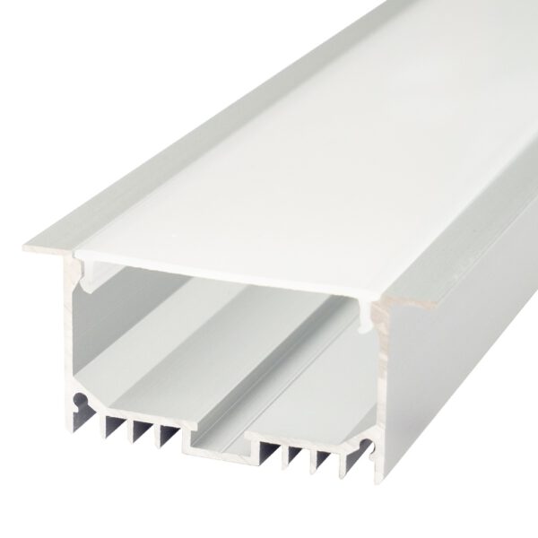 Barra de perfil para la instalación de tiras LED de forma empotrada de 69,6 mm. x 32 mm. Fabricada en aluminio con acabado anodizado en plata. Su terminación le otorga diseño y le convierte en una gran solución para realzar espacios, creando así una gran sensación de amplitud.